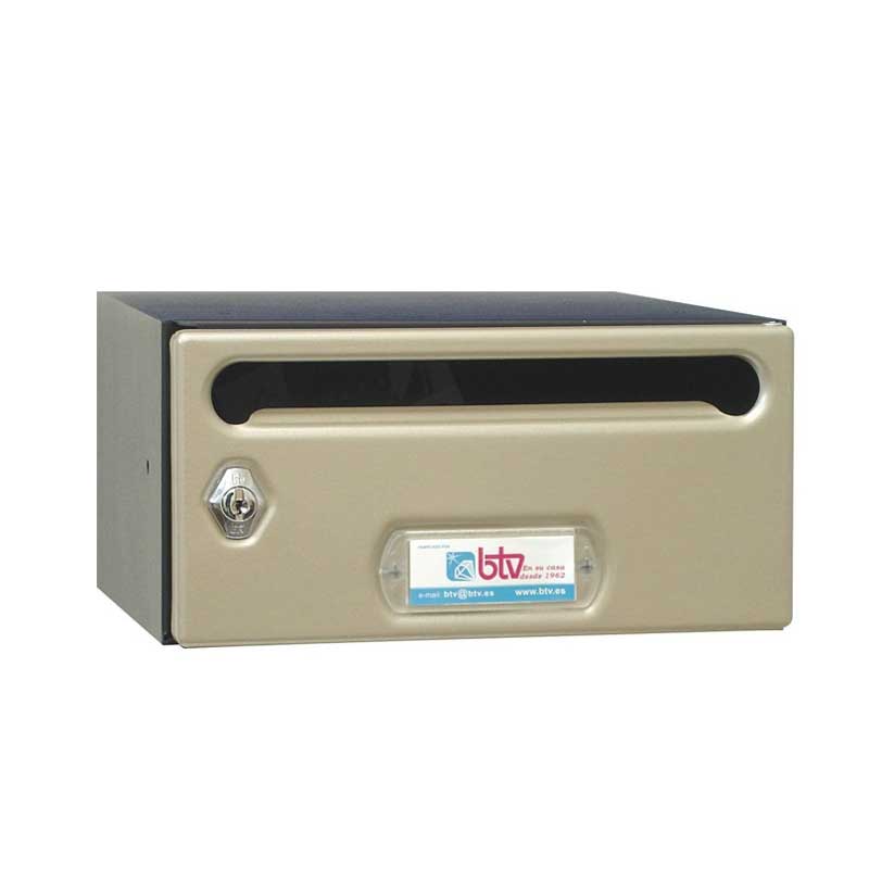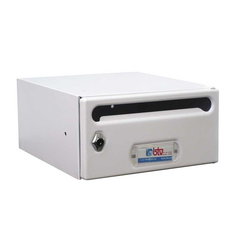 Buzón de interior horizontal Mercurio de BTV de cuerpo de acero pintado en negro excepto en modelos color blanco y puertas de acero inoxidable (calidad AISI 304) o acero pintado.