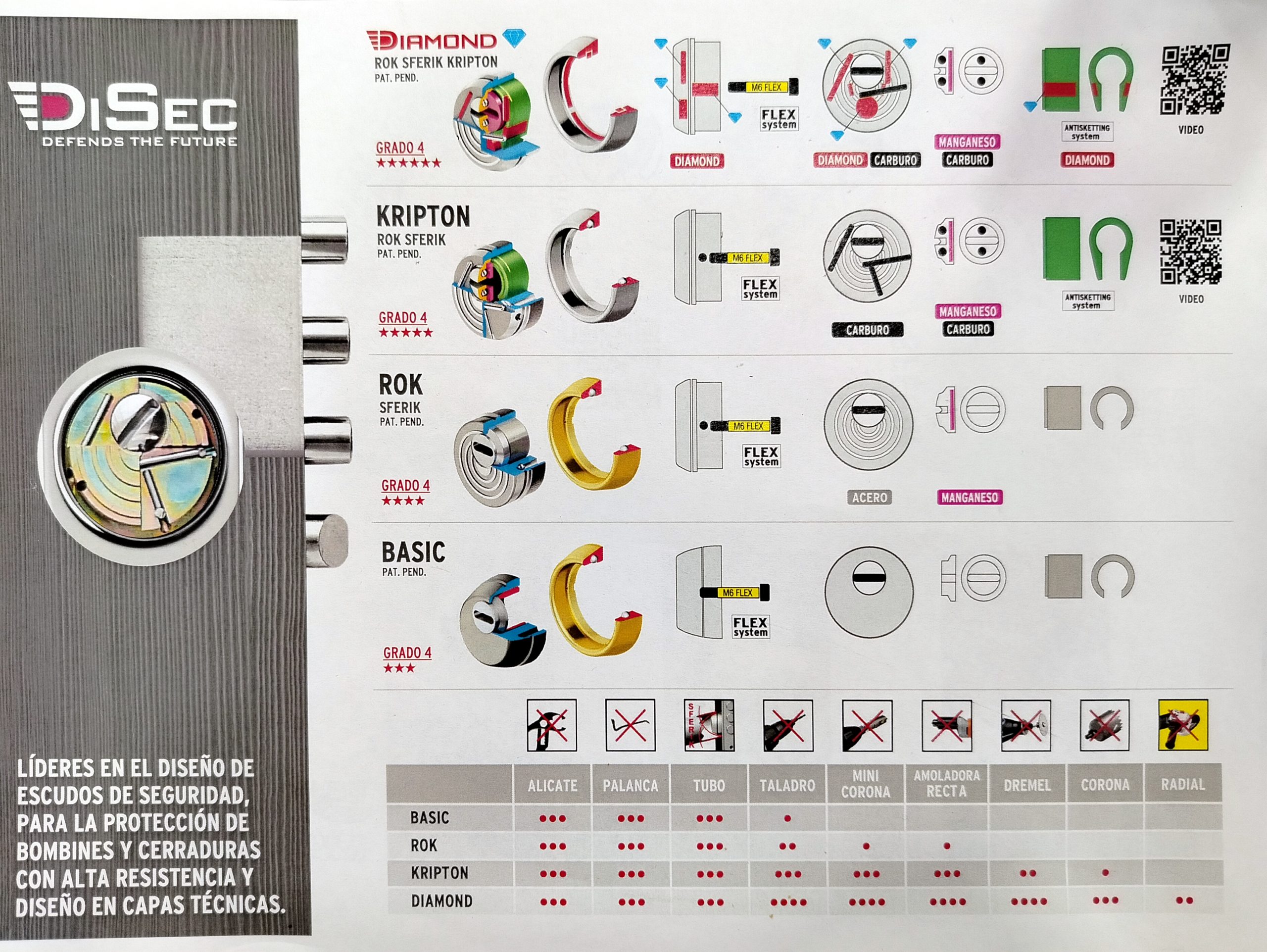 - Aumenta la resistencia física al taladrado y dificulta el ganzuado o bumping.